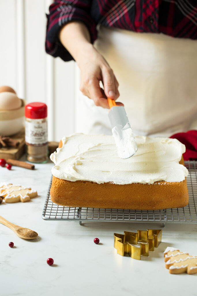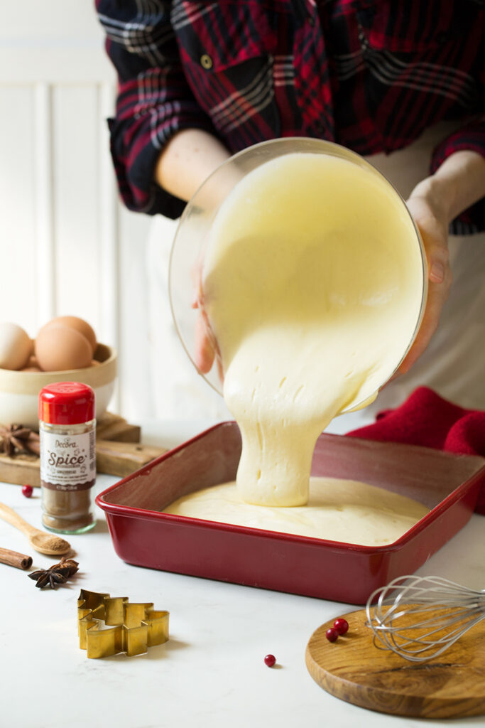 Ora prepara la torta. Separa i tuorli dagli albumi. Nella ciotola dei tuorli versa l’olio e il latte a temperatura ambiente e mescola con una frusta. In un’altra ciotola setaccia la farina con il lievito, poi aggiungi lo zucchero, le spezie, la scorza delle arance e un pizzico di sale. Versa il composto liquido nella ciotola con la farina e mescola con la frusta per amalgamare bene. Monta gli albumi con il cremor tartaro usando le fruste elettriche. Uniscili poco alla volta all’impasto, mescolando delicatamente con una spatola. Versa tutto nello stampo imburrato e infarinato e cuoci in forno statico a 160°C per circa 40 minuti. Lascia raffreddare la torta, poi sformala.
