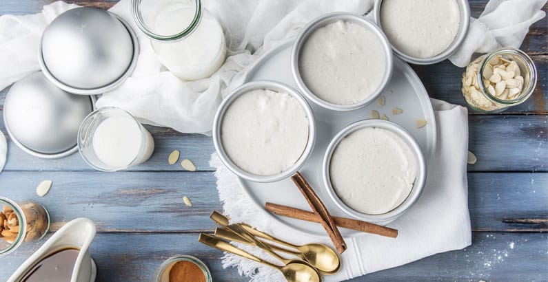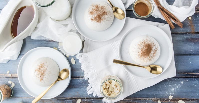 Poni in una pentola 1 lt di latte di mandorla. Aggiungi lo zucchero, mescola e porta a bollore. Stempera l’amido di mais in una ciotola con un mestolo di latte di mandorla caldo. Successivamente unisci il composto nella pentola. Mescola con una frusta o con un frullatore ad immersione per qualche istante. Il composto si addenserà quasi istantaneamente. Versa il biancomangiare all’interno degli stampi. Lascia raffreddare completamente prima di porre in frigorifero.