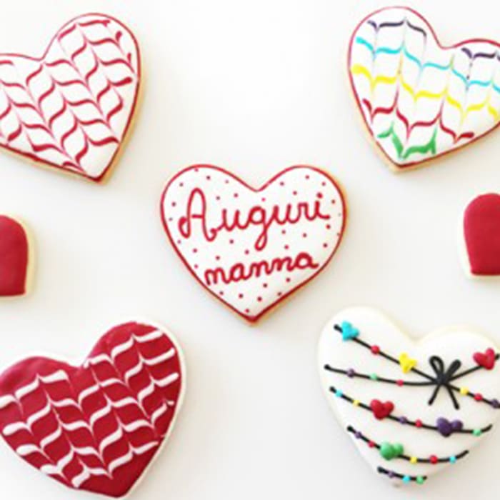 Colora con i gel coloranti la ghiaccia reale e decora i cuori utilizzando una sac à poche monouso ed il cornetto tondo n°3. Divertiti a creare trame e motivi diversi a seconda della tua fantasia. Lasciati ispirare da Decora e regala alla tua mamma un pensiero speciale preparato da te.
