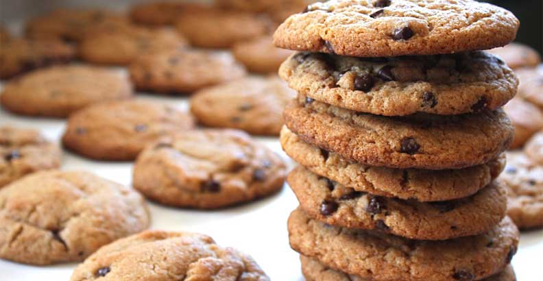 La maggior parte delle ricette che sono divenute prima un successo e poi un simbolo, sono frutto del caso. Si racconta che intorno agli anni ’30 la Signora Ruth Wakefield proprietaria del ristorante “Toll House Inn” nel Massachusetts, stava preparando i suoi soliti biscotti, quando si accorse di essere rimasta senza nocciole. Decise di prendere dalla dispensa una tavoletta di cioccolato Nestlé pensando che tritandolo si sarebbe fuso nell’impasto, ma dopo la cottura le scaglie restarono intatte. Con grande sorpresa i biscotti “sbagliati” piacquero molto al punto che la ricetta venne stampata nel retro della stessa barretta. Settantacinque anni fa decise infatti di vendere per appena un dollaro i diritti della propria ricetta a Nestlé, che per anni – facendole un’enorme pubblicità – la riportò sugli involucri delle barrette di cioccolato attribuendola a “The famous Toll House Innat Whitman, Massachusetts”!