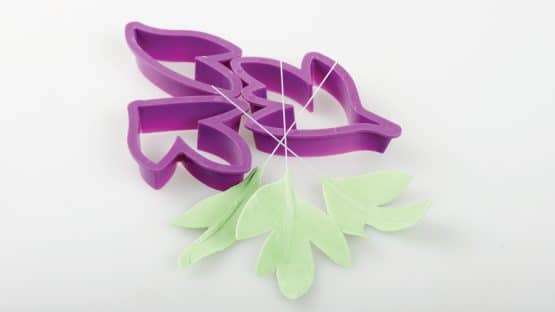 Realizza le foglie con le altre 3 formine e falle asciugare, come fatto per i petali.