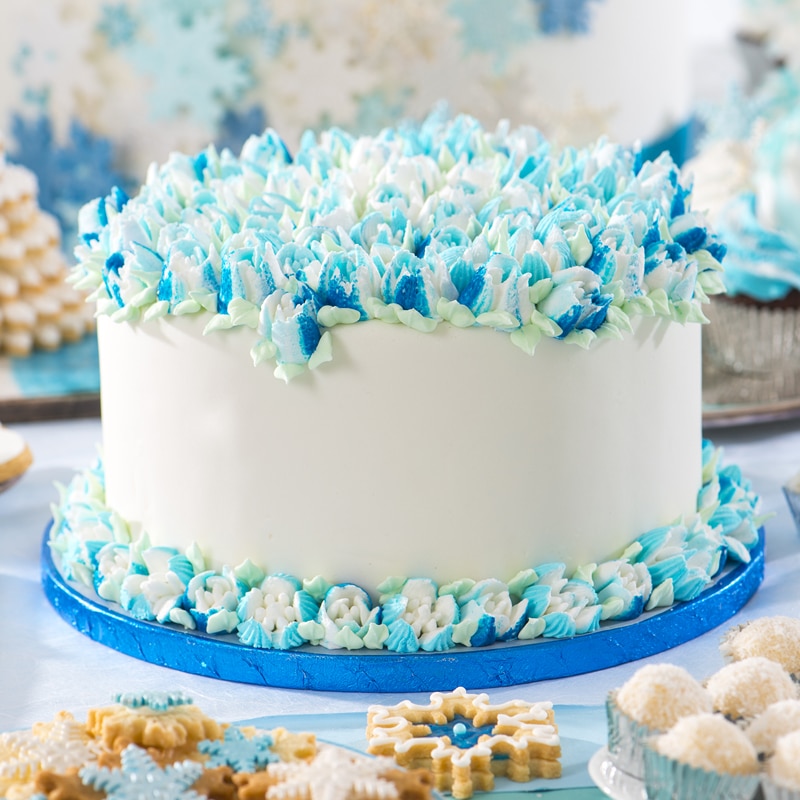 Monta il burro con lo zucchero fino ad ottenere un composto morbido e spumoso. Aggiungi il resto degli ingredienti e mescola bene in modo da amalgamare il tutto. Versa l’impasto nello stampo ø 20 cm, imburrato ed infarinato, ed inforna a 160° C per circa 70 minuti. Sforna e lascia raffreddare. Taglia l’impasto in 3 strati, bagnalo e farciscilo con la Crema Spalmabile. Ricopri la torta con la Pasta di Zucchero e realizza le decorazioni utilizzando la Ghiaccia Reale ed i Cornetti per Fiori 3D.